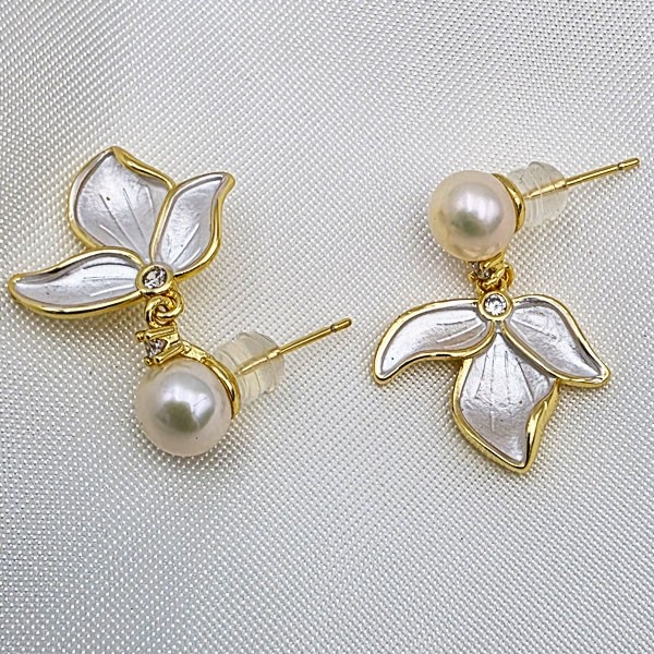 Composition :Flower-inspired natural fresh water pearl drop earrings. Non-contractual photo — variations in shape, color, and size may occur .